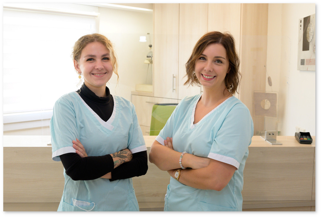 Amélie et Zoé vous accueillent, organisent votre plan de traitement, préparent et assistent les chirurgies, gèrent la chaine de stérilisation au quotidien avec bonne humeur et professionnalisme.